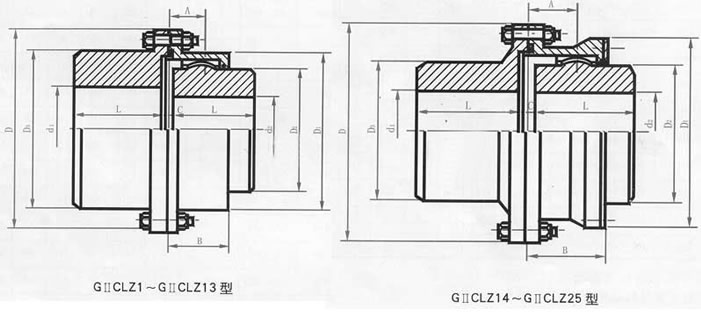 ●齒式聯軸器是由齒數相同的內齒圈和帶外齒的凸緣半聯軸器等零件組成。外齒分為直齒和鼓形齒兩種齒形,所謂鼓形齒即為將外齒制成球面,球面中心在齒輪軸線上,齒側間隙較一般齒輪大,鼓形齒聯軸器可允許較大的角位移(相對于直齒聯軸器),可改善齒的接觸條件,提高傳遞轉矩的能力,延長使用壽命。有角位移時沿齒寬的接觸狀態。